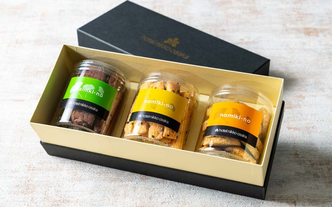 なみきのクッキー&パイ3種セット、バスソルトセット、ホテル公式マスコット「アメちゃんねこ柄エコバッグ」などもございます。
