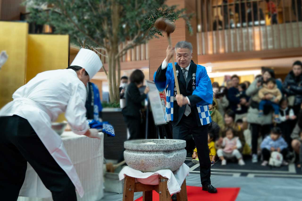 皆様のお声に合わせて餅をつく元日恒例のイベントです。どなた様でもご参加いただけます。
