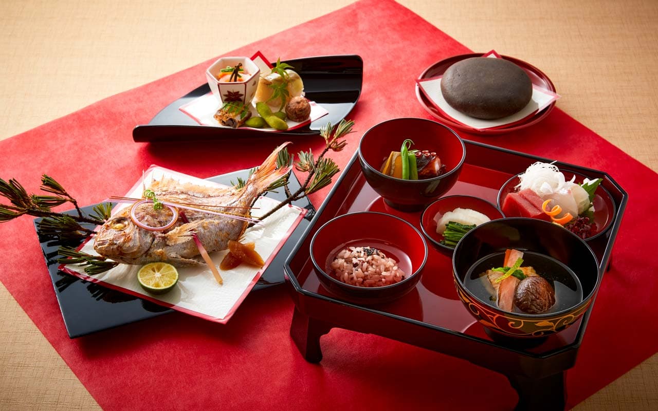 お祝いの 御祝肴、赤飯、鯛の姿焼きなどを取り入れた特別会席でお席を華やかに彩ります。