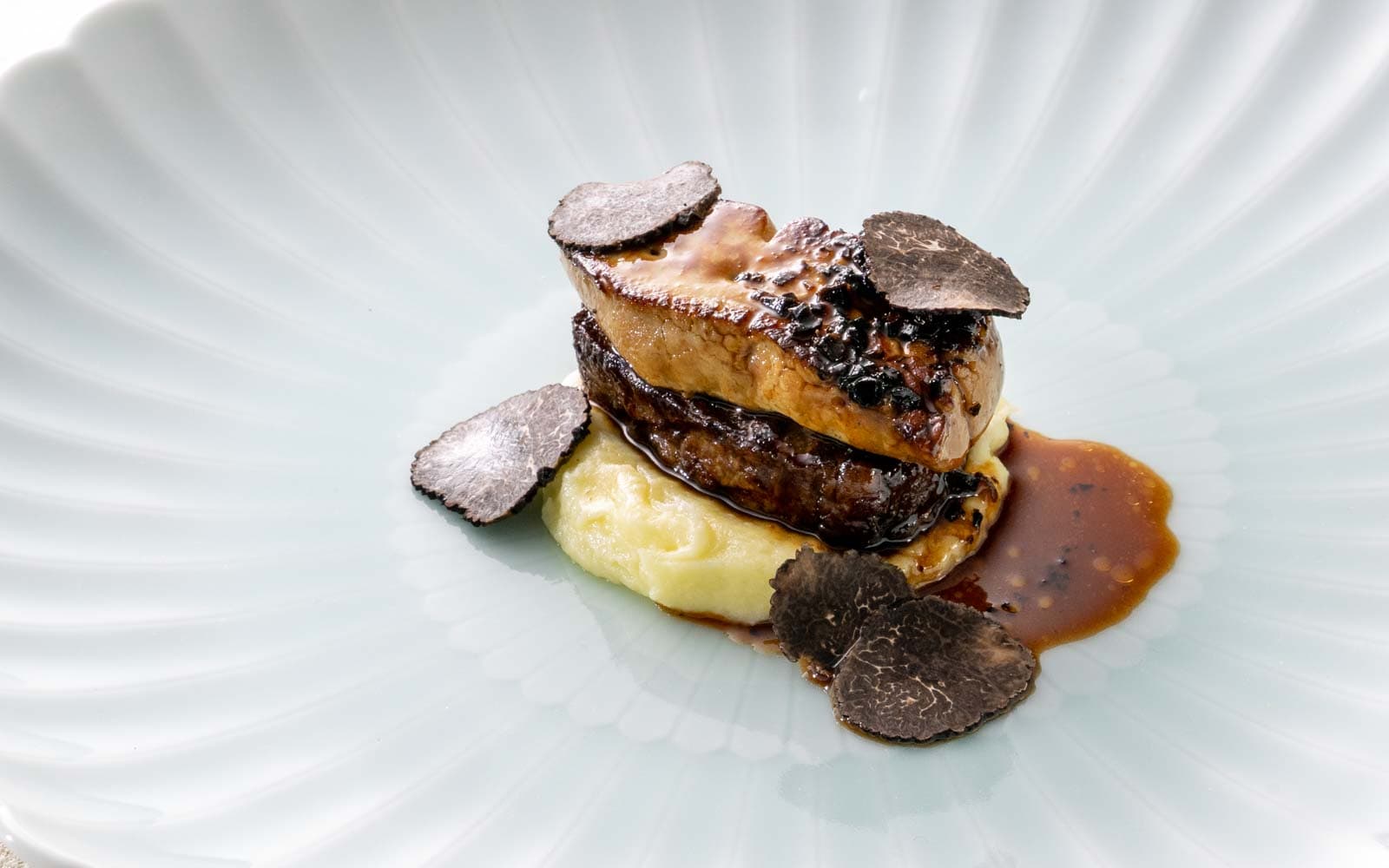 アミューズ、オードブル、スープ、魚料理、黒毛和牛A4フィレステーキ ロッシーニスタイル、デザート、コーヒー または 紅茶、小菓子