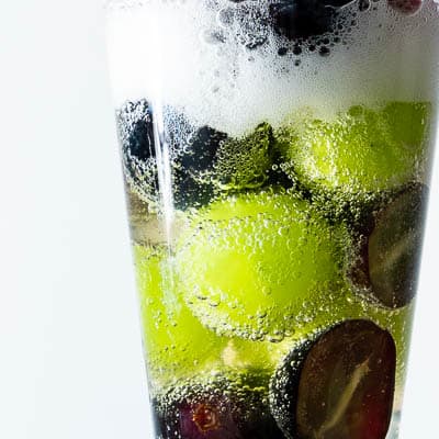 皮ごと食べられるシャインマスカットとナガノパープルをふんだんに使用し、マスカットリキュール、ぶどうのシャーベット、シャンパンと「ぶどう」にこだわったカクテルに仕立てました。