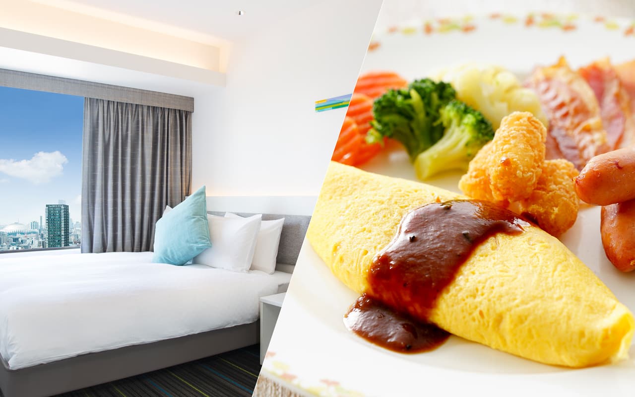 キャベツ、豚肉、紅ショウガというお好み焼きの具材を使った「ホテル日航大阪特製オムレツ」。仕上げはソースとマヨネーズで、大阪の味を朝から楽しめる一品です。