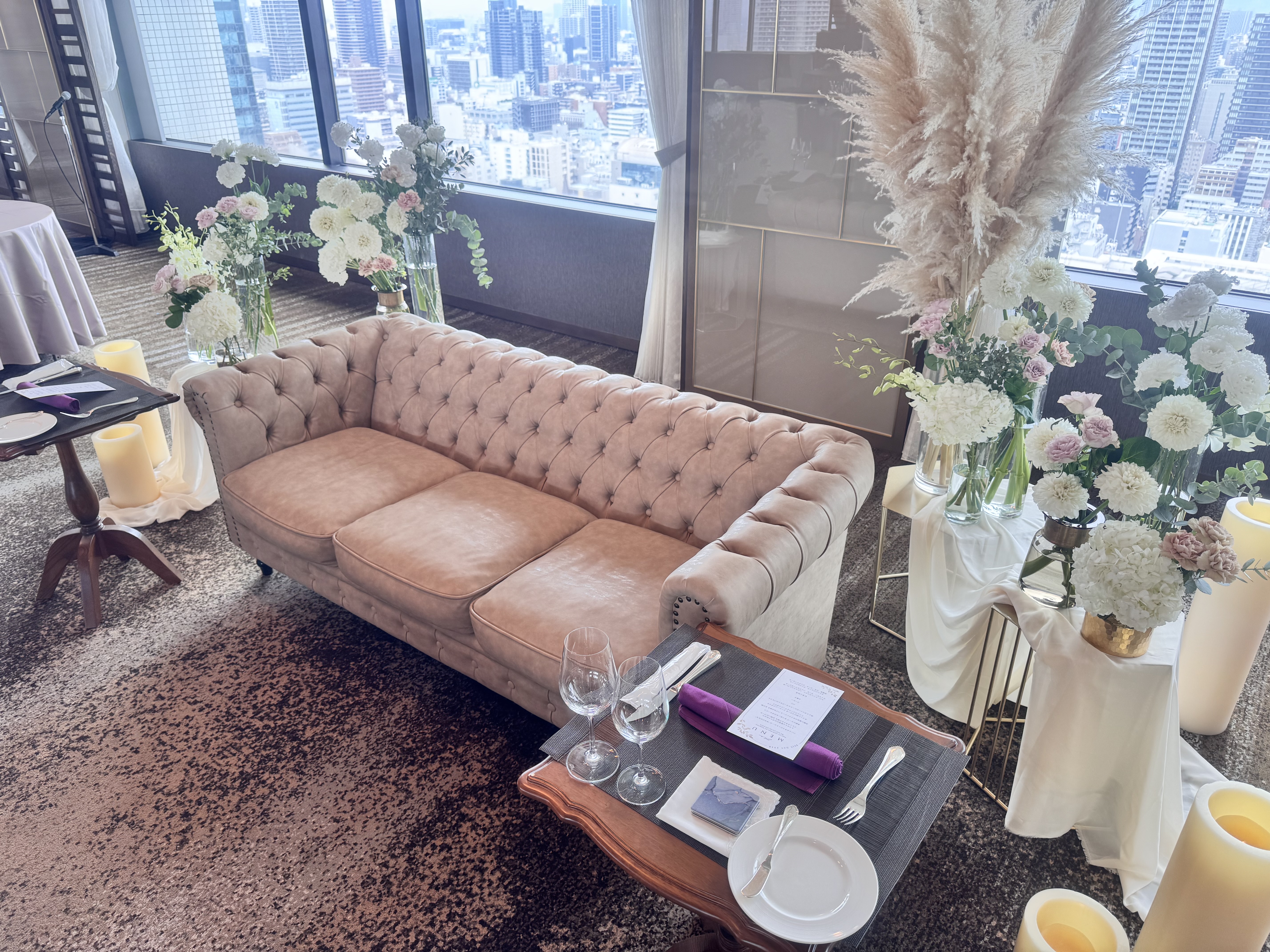 テーブル装飾がない分、背景や足元の装飾で雰囲気を作ることになります。