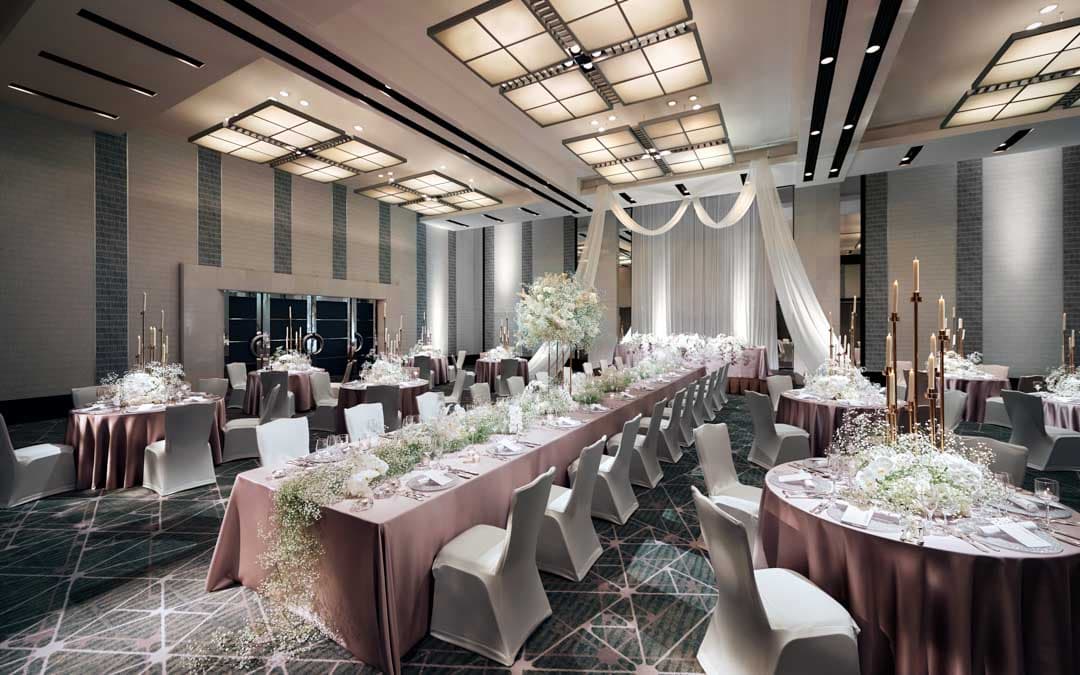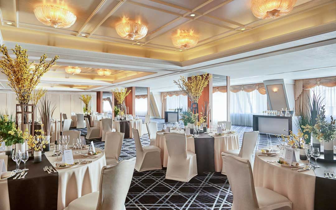 ホテル最大規模のラグジュアリーなボールルーム。天井が高く開放感あふれる空間には最新の映像照明設備が完備され、ドラマティックなビジュアルのエンターテインメント演出も楽しんでいただけます。